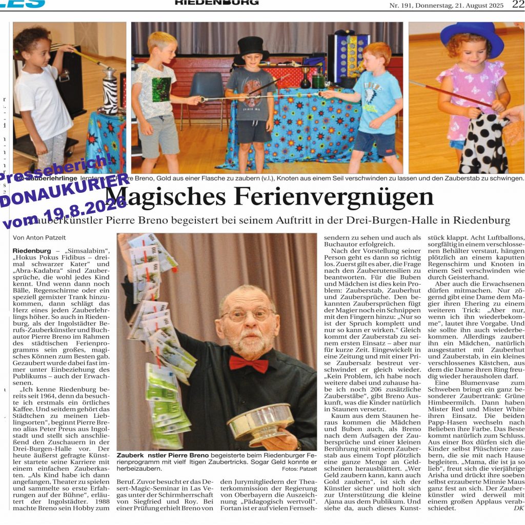 Ausgezeichnet hat mich die Theaterkommission der Regierung von Oberbayern, nach Prüfung, einstimmig, mit dem Prädikat: „Pädagogisch wertvoll!“. Bekannt bin ich gleichermaßen als mehrfacher Buchautor. Die Basis und Grundlagen meines breiten künstlerischen Wirkens war 1986 und 1987: „Desert-Magic-Seminar“ in Las Vegas/USA, unter der Schirmherrschaft von Siegfried & Roy. Im Rahmen meiner USA-Reisen war ich beide Male Gast im „Magic Castle„ der Academy of Magic Art, Los Angeles-Hollywood/USA. An Volkshochschulen arbeite ich als Dozent: Zauberkunst Nachwuchsförderung.